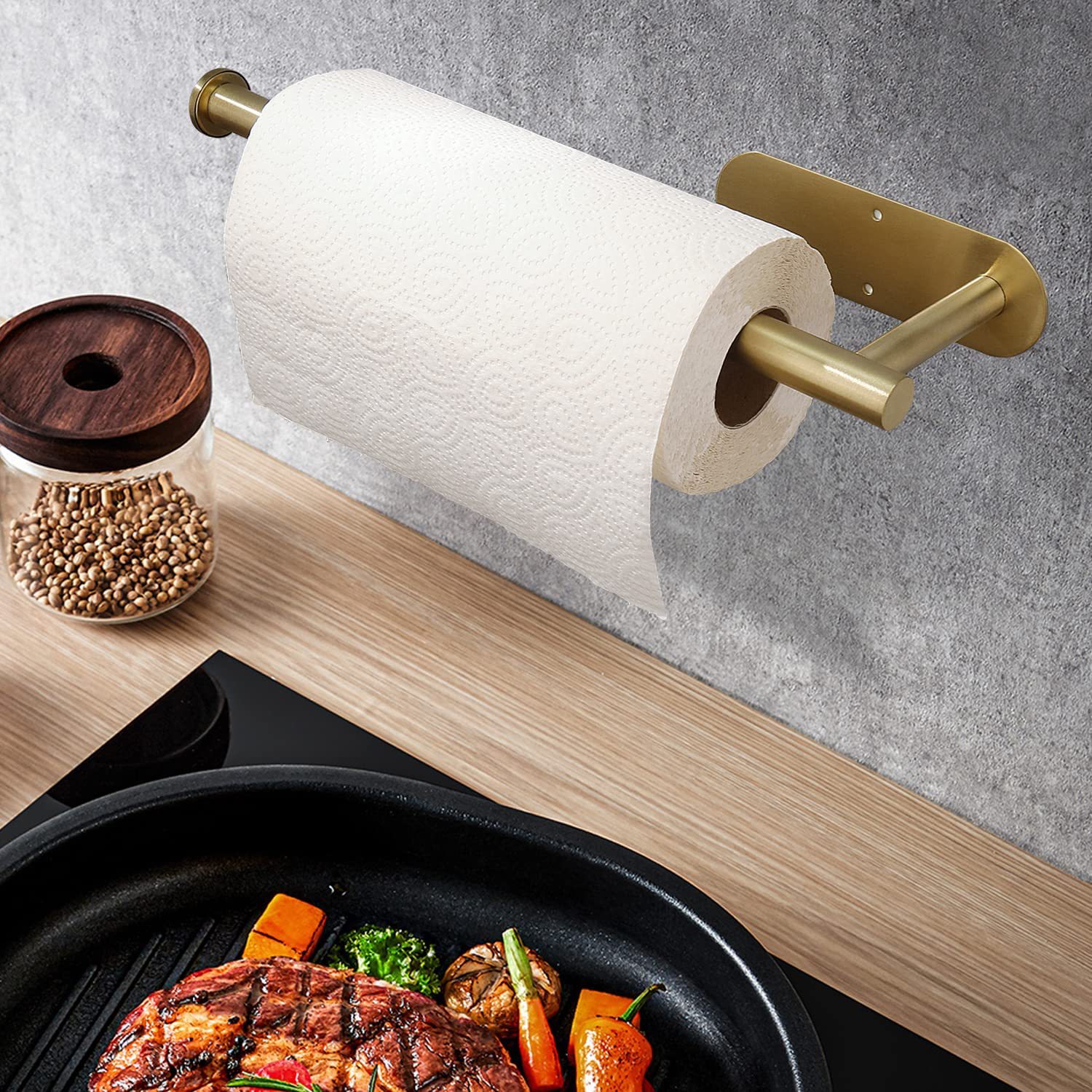 Square round black non-punching stainless steel kitchen paper towel holder Cabinet Paper towel holder Kitchen paper roll holder